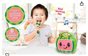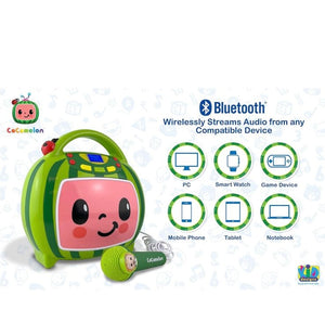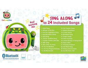 Bluetooth Boombox: Connect this party speaker to any compatible Bluetooth device and stream all your content wirelessly. Sing like a star to your favorite Cocomelon songs using the real working wired microphone.