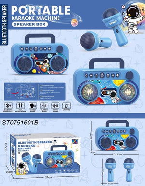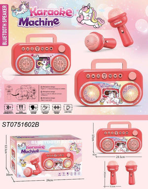 This portable kids microphone with built in karaoke functions offer musical fun, featuring light weight plastic construction for easy carrying