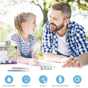 Educational Pens Kit: It is rechargeable with USB and totally portable to go anywhere. Educational graffiti kit for ages toddler to Adult. You are never too young or too old to learn Graffiti.
