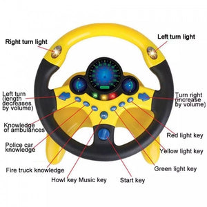 Learning steering wheel Electric simulation steering wheel toy with sound baby children's music education co-pilot stroller steering wheel vocal toy Feature: 1. An interactive steering wheel with sound is a good way to increase imagination and pretend to play time. 2. It has a high imitation appearance to exercise the baby's physical movement and stimulate muscle development. 3. The sound emitted by the car steering wheel makes the baby curious and interested, thereby improving hearing. 4. With unique dynamic music, it highlights the sense of rhythm and cultivates the baby's sense of music. 5. With suction cup, it can be connected to objects with smooth surface. Specification: Condition: 100% brand new Item type: steering wheel tool material: plastic Battery: 2 x AA batteries Available colors: blue, yellow, pink, orange, green Recommended age: 4-6 years old Dimensions: about 21 x 3.5 x 21 cm / 8.3 x 1.4 x 8.3