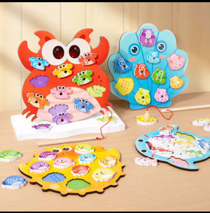 1.Eye-Catching Design: Colorfully designed in the shape of a big shell, this magnetic fishing game, featuring a cartoon animal theme with 10 small shells, effortlessly attracts attention