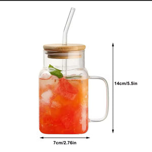 [Glass Tumble with Handle) Our glass cup with handle is easy to hold and convenient to carry when you are out and about, this drinking glass comes with a bamboo lid that can prevent liquid spillage,so you can take this travel mug with you, whether you’re playing sports, travelling, working, shopping, partying, picnicking, camping, etc., it lets you enjoy your favourite beverage to the fullest!