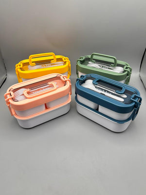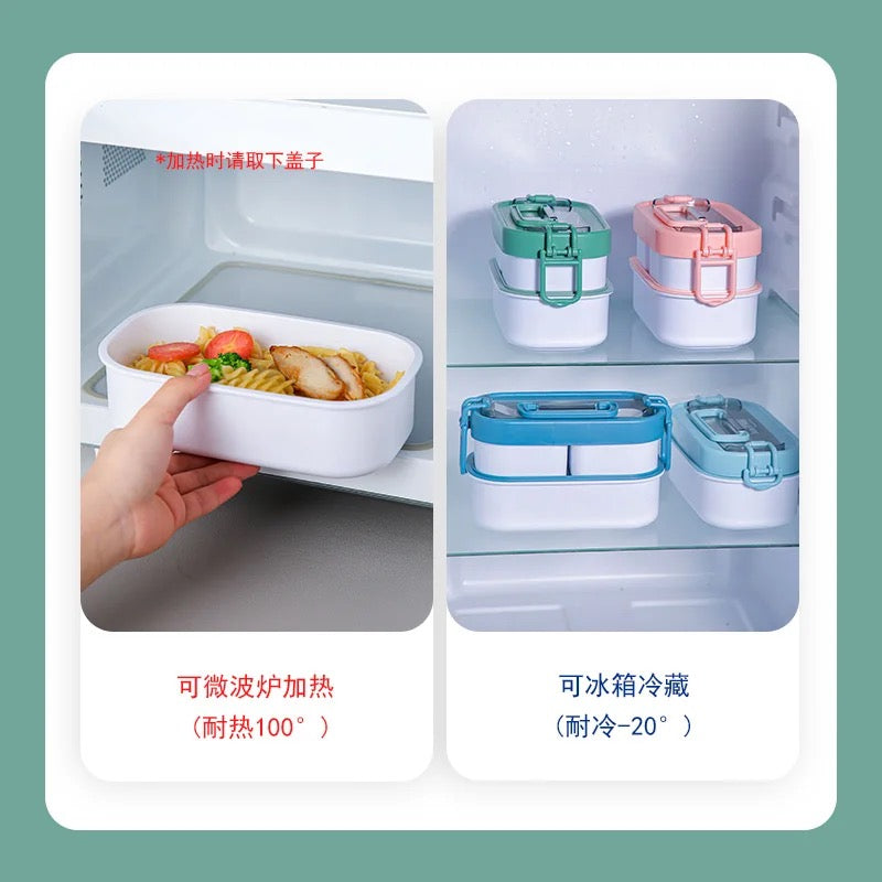 Stackable Bento Box ContainerJapanese Style Handel Design With Utensil Set All in One Leak-proof BPA Free Lunch Box for Adults and kids
